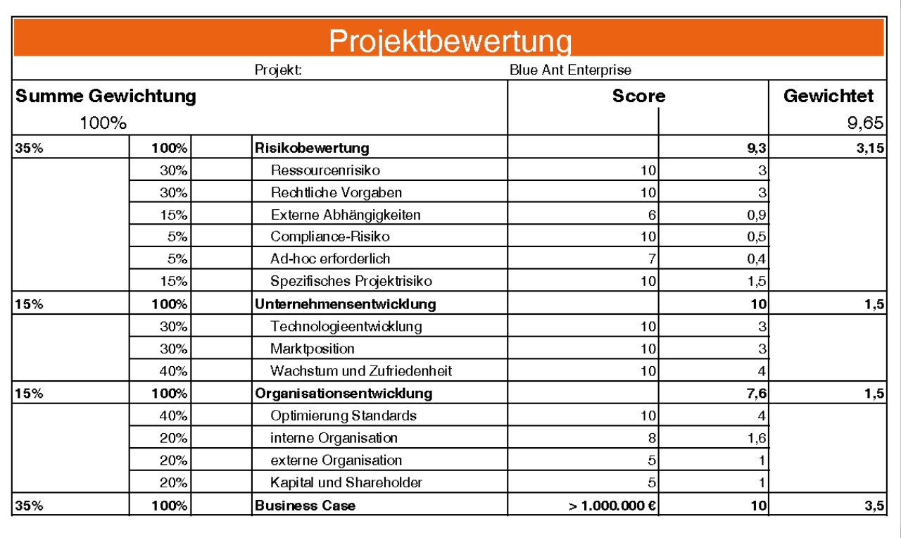 Völlig verständlich, dass jeder Mitarbeiter seinem Projekt die höchste Bedeutung beimisst. Objektiv und über alle Projekte im Unternehmen hinweg betrachtet, kann das aber schnell anders aussehen. Manche Projekte zahlen stärker aufs Unternehmensziel ein, manche weniger. Um ganz sachlich eine Rangordnung darstellen zu können, braucht ihr deshalb objektive Bewertungskriterien.