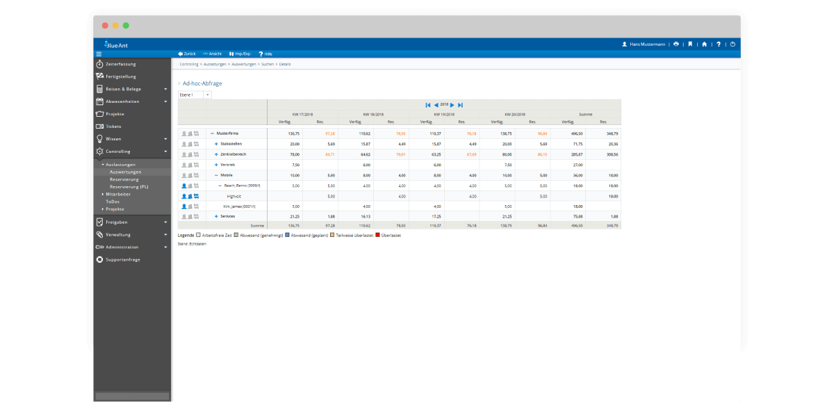 Doch die Arbeitszeiterfassung ebenso wie freie oder gebundene Kapazitäten haben im Ressourcen-Management keine Disziplinierung oder Leistungsmessung im Sinn. Es geht einzig und allein darum, Ressourcen besser planen und Mitarbeiter somit sogar wieder entlasten zu können.