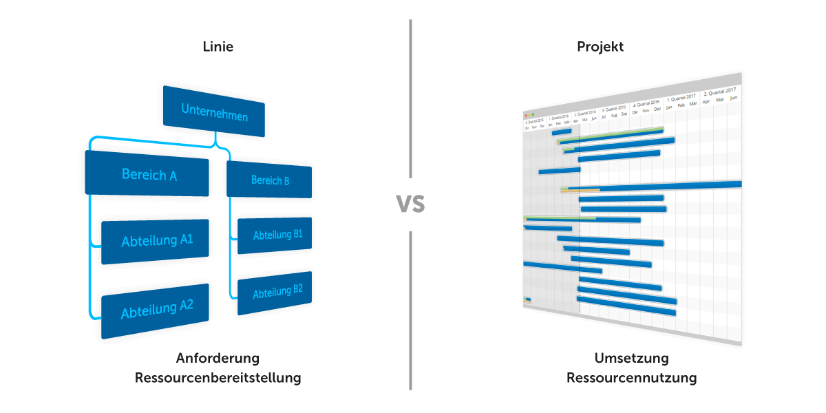 Der bereits erwähnte Widerspruch zwischen „Linie“ und „Projekt“ ist im Ressourcen-Management dringend zu beseitigen. Wieder einmal muss ein Wandel stattfinden: Die Linie muss das Ressourcen-Management sogar fördern, damit das Projekt gelingt. Denn gerade sie ist es, die Anforderungen und somit Projekte generiert. Hier ist ein Abwägen erforderlich, denn für die Umsetzung der Projekte sind Ressourcen erforderlich. Und diese Ressourcen stammen – auch – aus dem Personal der Linie. Um diesen Konflikt zu beheben oder zumindest darzustellen und zu verdeutlichen, braucht es das Ressourcen-Management.